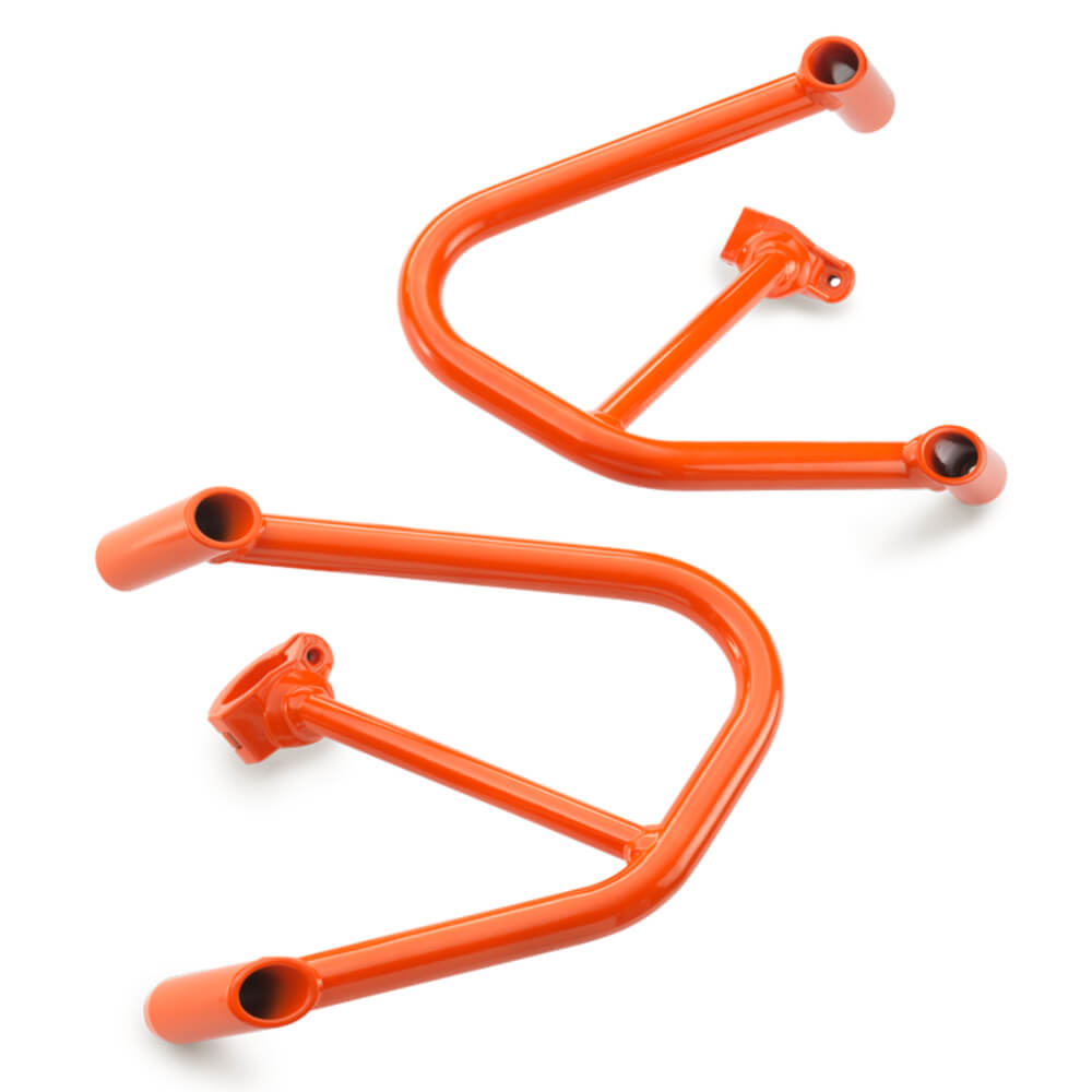 Комплект амортизаторов разработан для точной и бесшовной посадки, что гарантирует его идеальную интеграцию с вашим мотоциклом KTM без ущерба для производительности. Независимо от того, путешествуете ли вы по бездорожью или по пересеченной местности, эти брусья действуют как защитный экран, поглощая энергию удара и снижая риск дорогостоящего ремонта. Гладкая и надежная конструкция дополняет агрессивный внешний вид вашего KTM, придавая ему более прочный эстетический вид, готовый к приключениям.