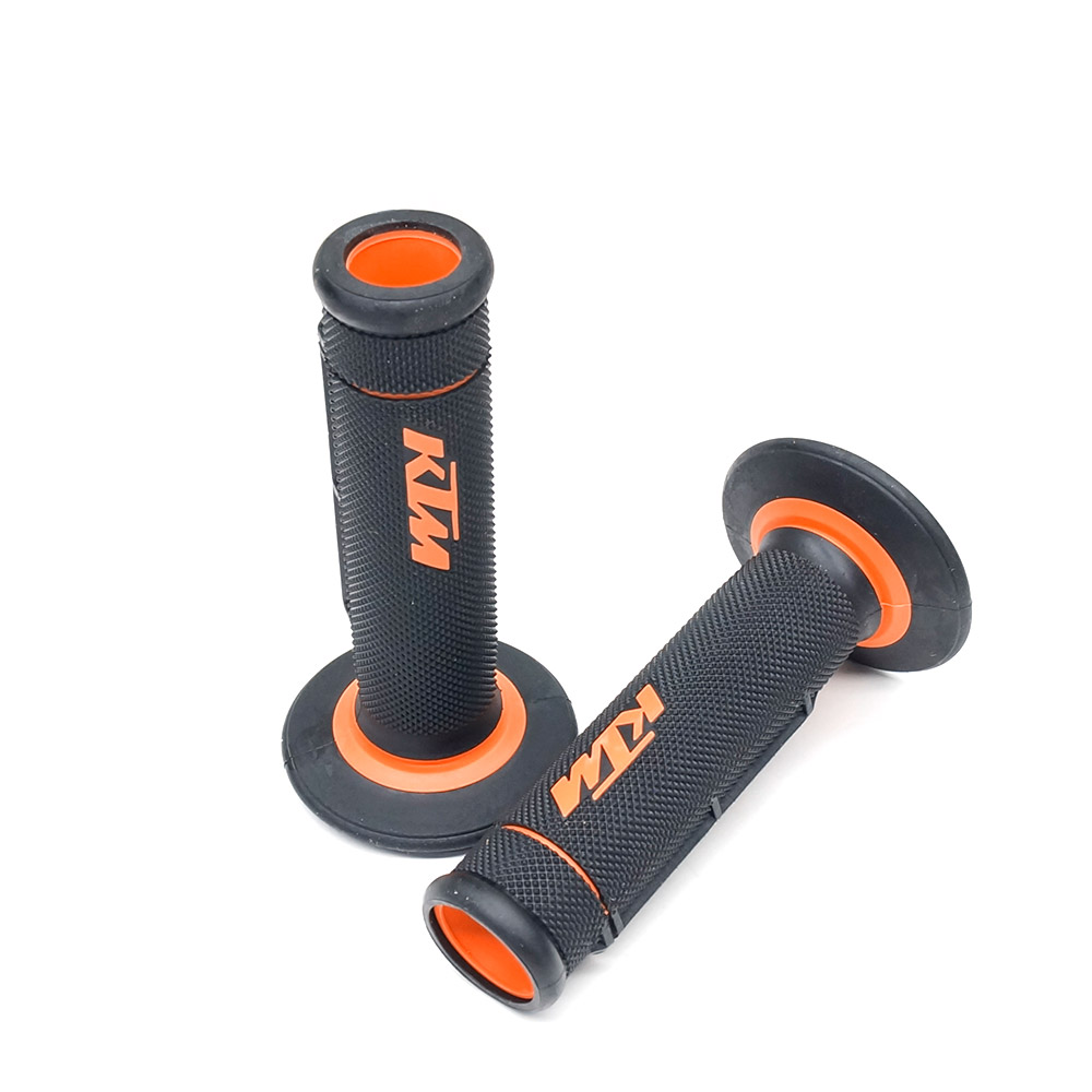 Комплект рукоятки KTM Dual Compound Grip Set Open End 63002021200 отличается исключительной долговечностью, благодаря прочному оранжевому внутреннему слою и износостойким внешним концам, дополненным более мягким черным материалом для повышения комфорта.