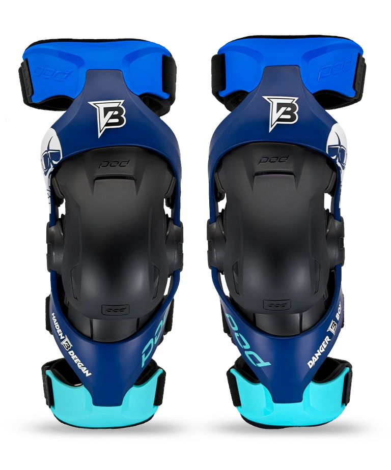 Ограниченная серия подростковых брейсов Haiden "Danger Boy" Deegan - это не просто элемент экипировки, это заявление. С поразительной синей рамой, дополненной аква-цветом манжет и графики, логотипами Danger Boy и замысловатым щитком на верхней раме, эти брейсы излучают уверенность и настрой, будь вы на треке или вне его. Сочетание эстетики и защитных технологий делает их обязательным аксессуаром для юных гонщиков, которые требуют самого лучшего.
