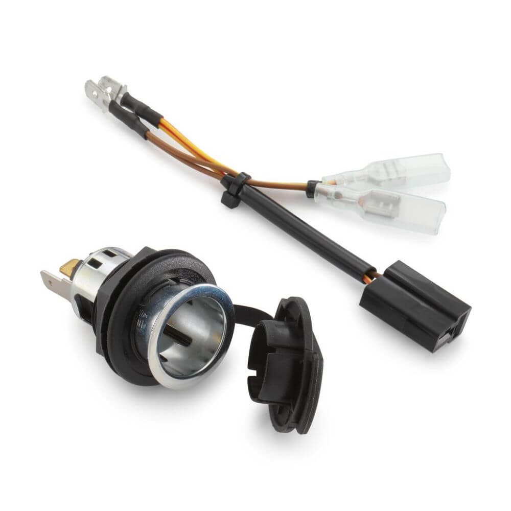 Этот комплект розеток питания KTM 60811042044 оснащен защитной крышкой и обеспечивает надежное питание вашей навигационной системы или другого электронного устройства.