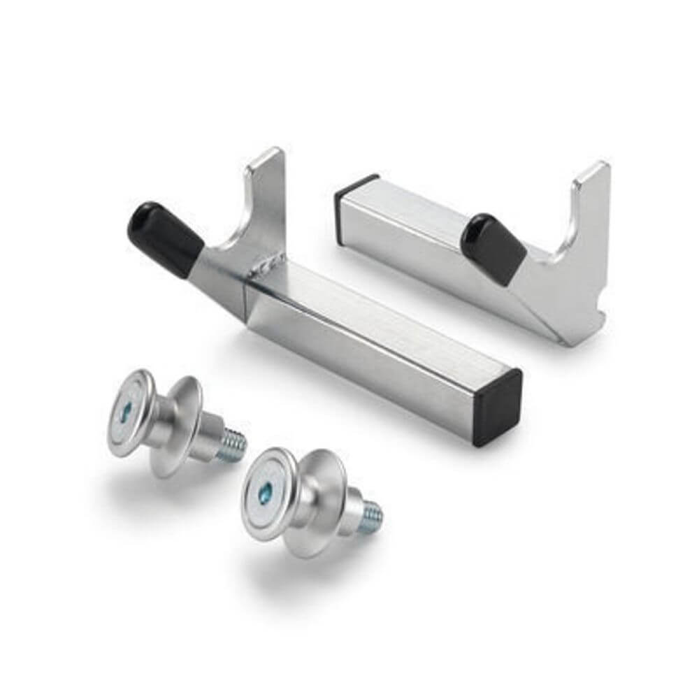 В комплект входят предварительно установленные точки крепления, обеспечивающие простоту установки и использования. Благодаря опорным адаптерам, закрепленным на подъемном устройстве заднего колеса, вы можете без особых усилий поднимать свой мотоцикл и уверенно выполнять задачи по техническому обслуживанию.